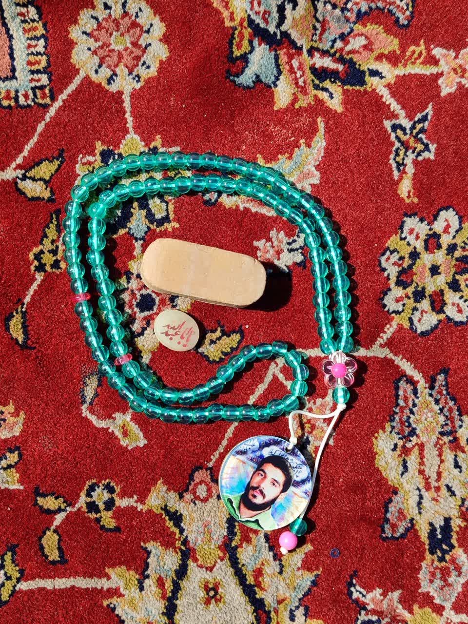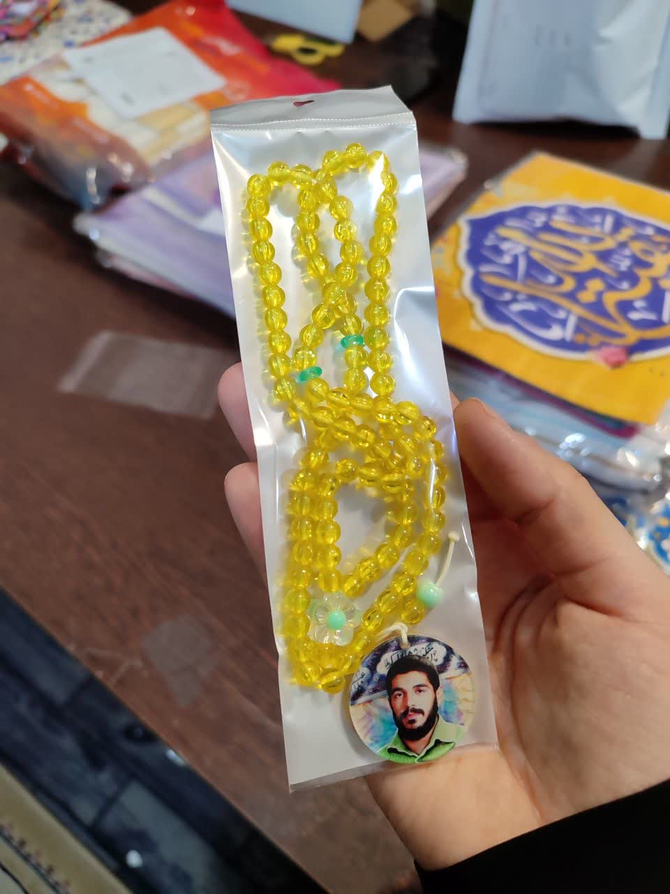 تسبیح صدتایی پلاستیکی با آویز پلکسی طرح شهید هادی